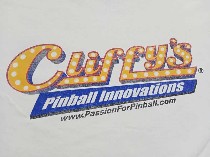 One of my first items of pinball-specific clothing. I got this included in one of my orders from Cliffy many years ago. I've certainly worn it out by this point with most of the logo starting to peel off. A testament to how much I wore it!