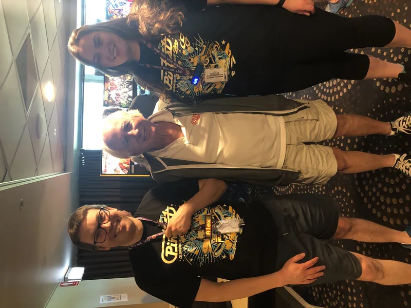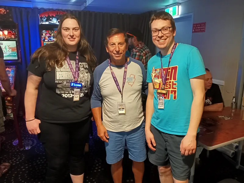 Another important part of pinball history is the people. The people who designed, programmed, and assembled the machines. Pinball companies are manufacturing companies at their core, with huge teams of people putting pinball cabinets together. It would be impossible to meet them all. However, I have been lucky enough to meet several key industry figures at pinball events and conventions. Below are photos of Fiona and myself with Gary Stern (founder of Stern Pinball) and Jack Jack Guarnieri (founder of Jersey Jack Pinball).