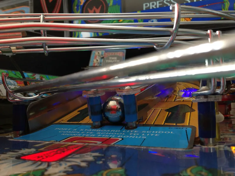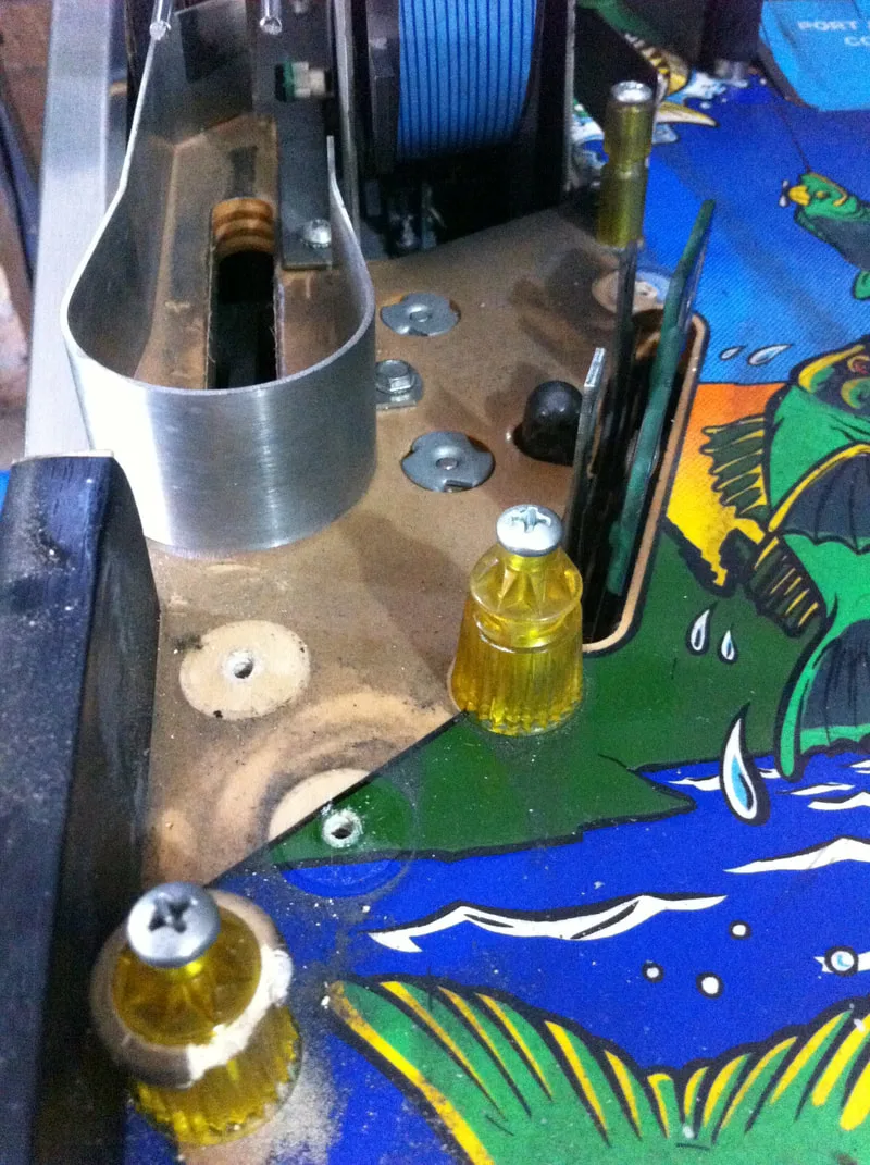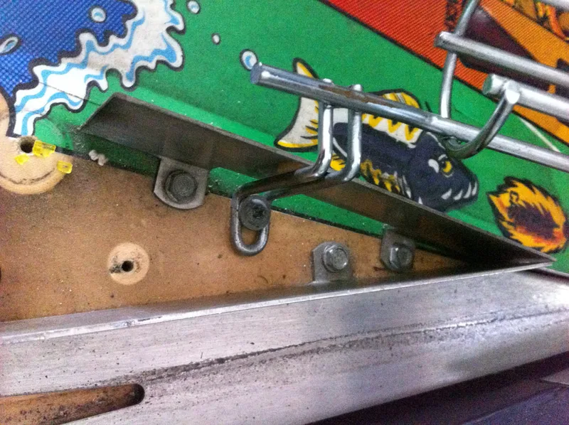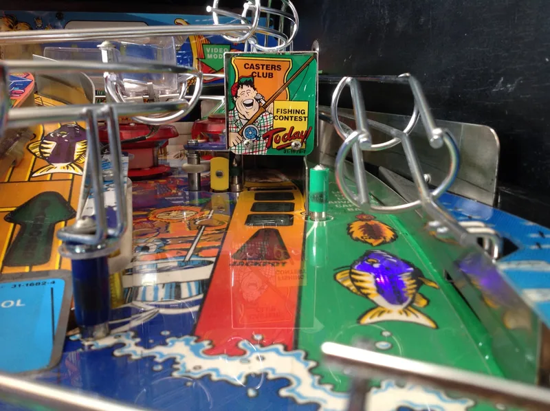 The other Fish Tales did have a wire gate in the Caster's Club but I found that it occasionally caused the ball to get stuck under it. This caused a lot of hang-ups mid-game, so I tried to bend the wire gate slightly to give the ball more space. Big mistake! I ended up snapping it at the bend, rendering it totally useless. So, long story short, don't twist metal the wrong way! Nevertheless, without the wire gate, the ball hang-ups were significantly reduced. Ball rejections from strong shots into the Caster's Club are rejected a little more frequently, however. So I'll have to make up a replacement for this wire gate eventually.