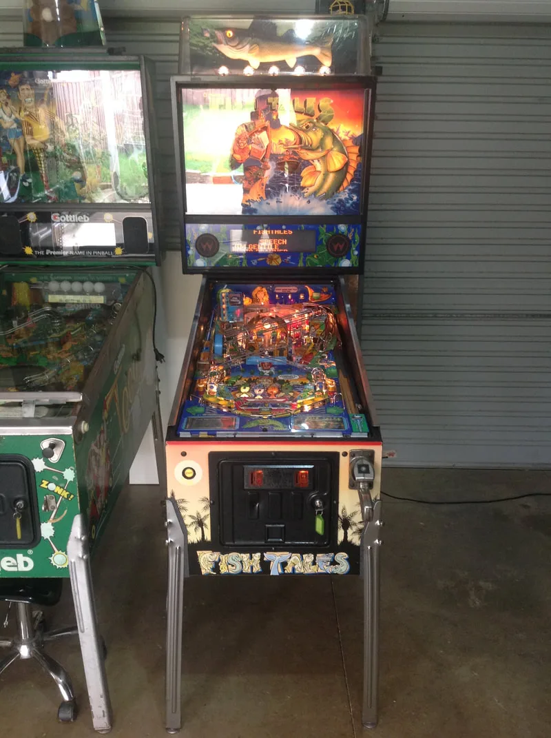 I have to admit, Fish Tales (Williams, 1992) is never a game I had thought seriously about owning. I had seen it a few times but the theme threw me totally off. I hate fishing. So it stood to reason that I'd never like a pinball machine based on fishing, and I never paid Fish Tales much attention. It just happened to be that there were two Fish Tales machines in the lot I purchased during our pinball road trip. I figured I would restore them both and sell them on.