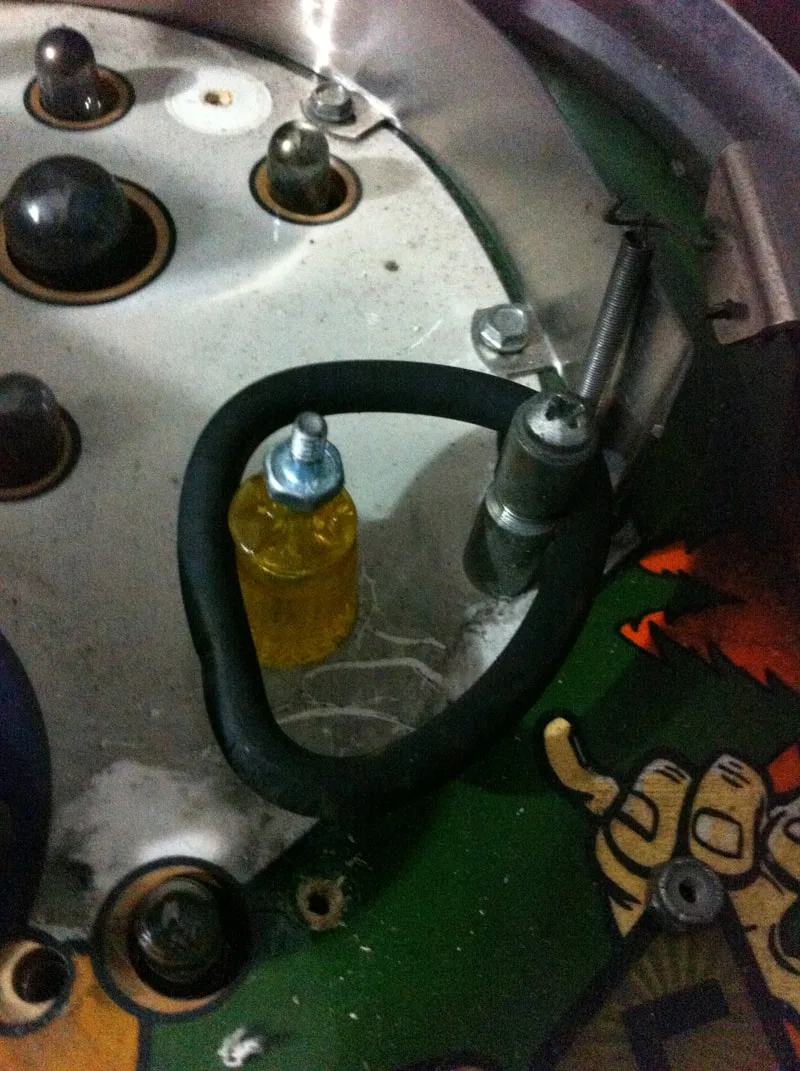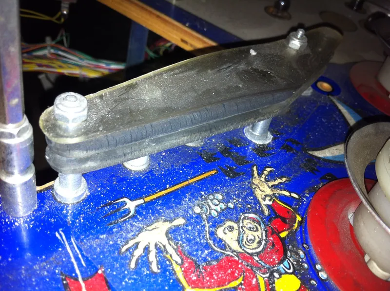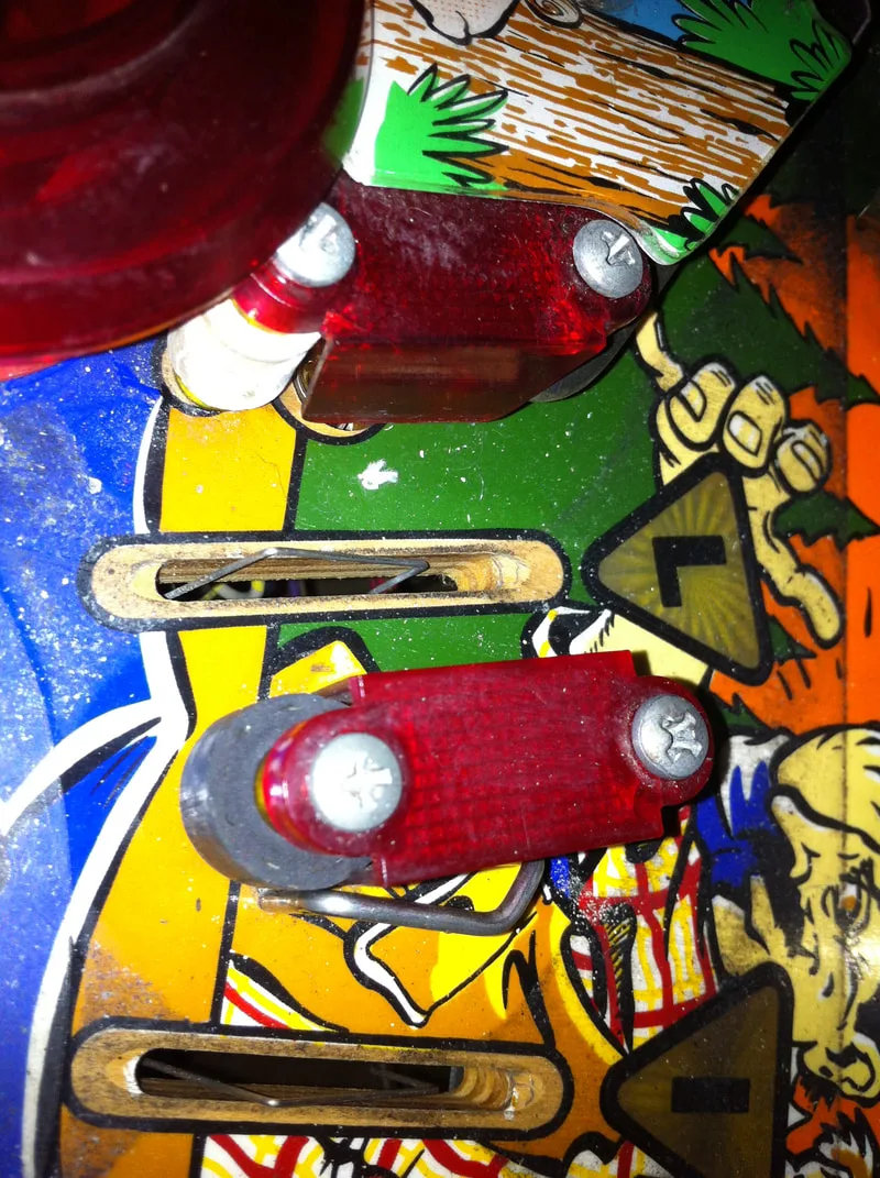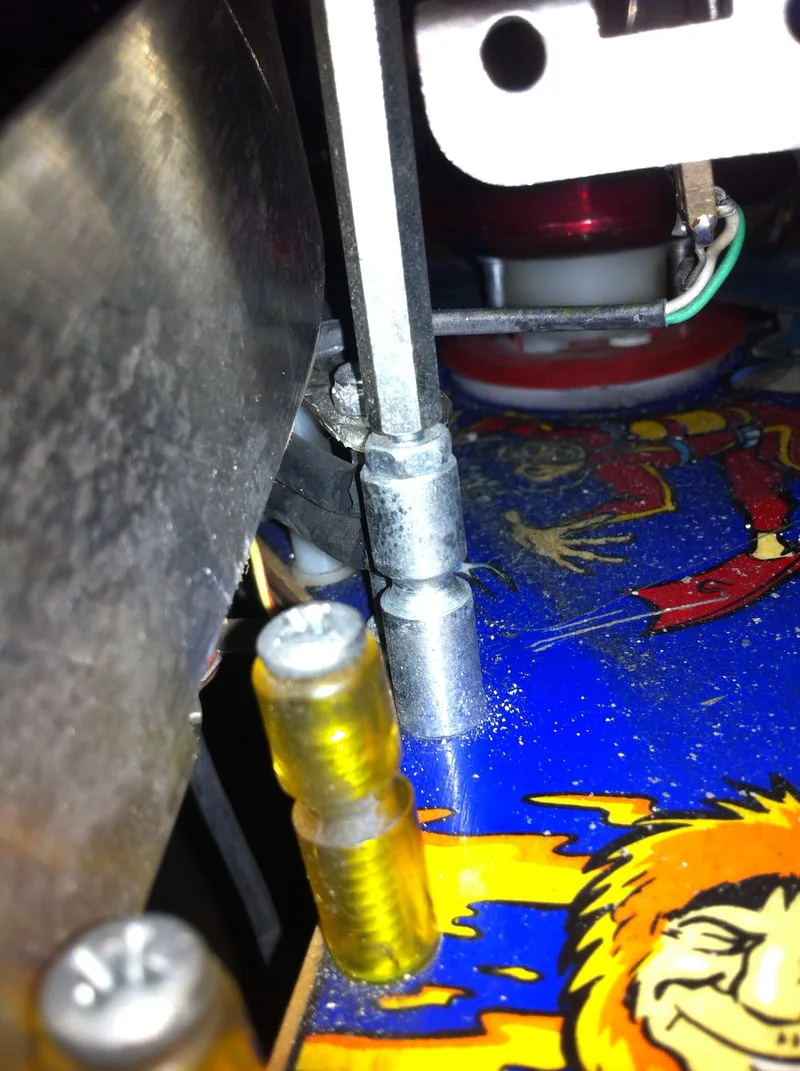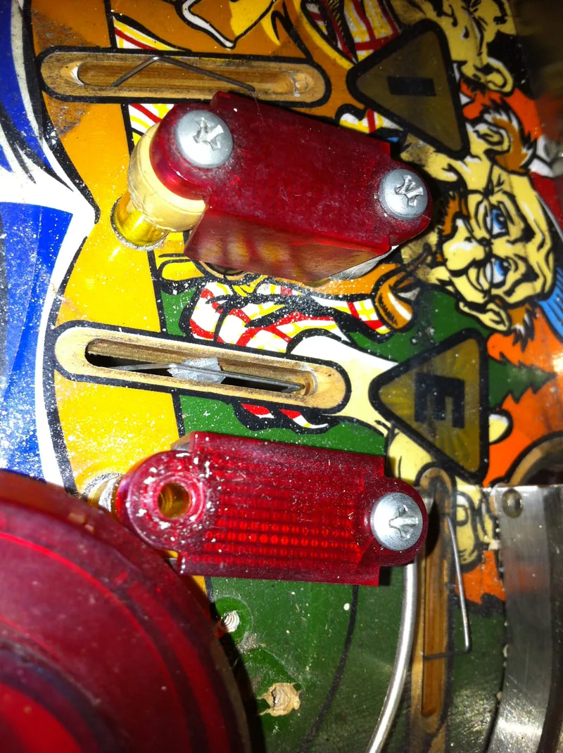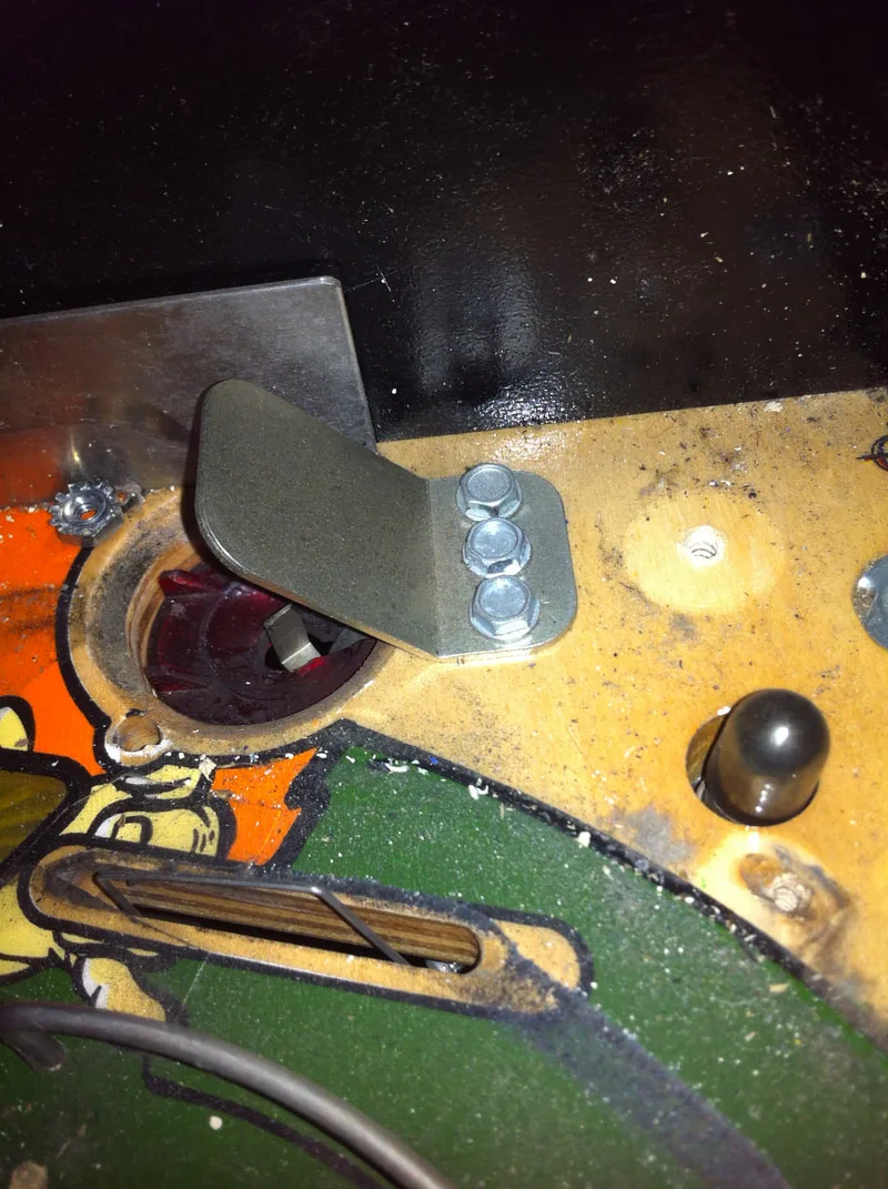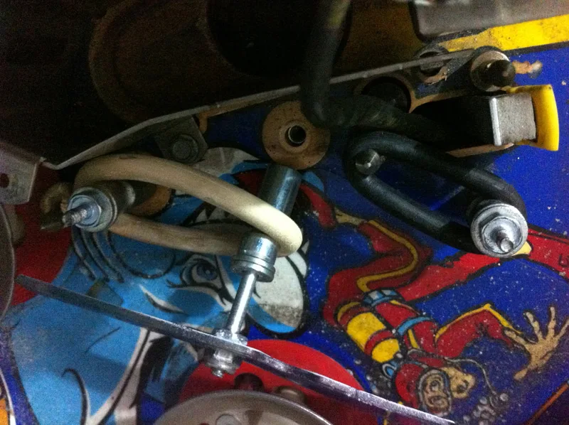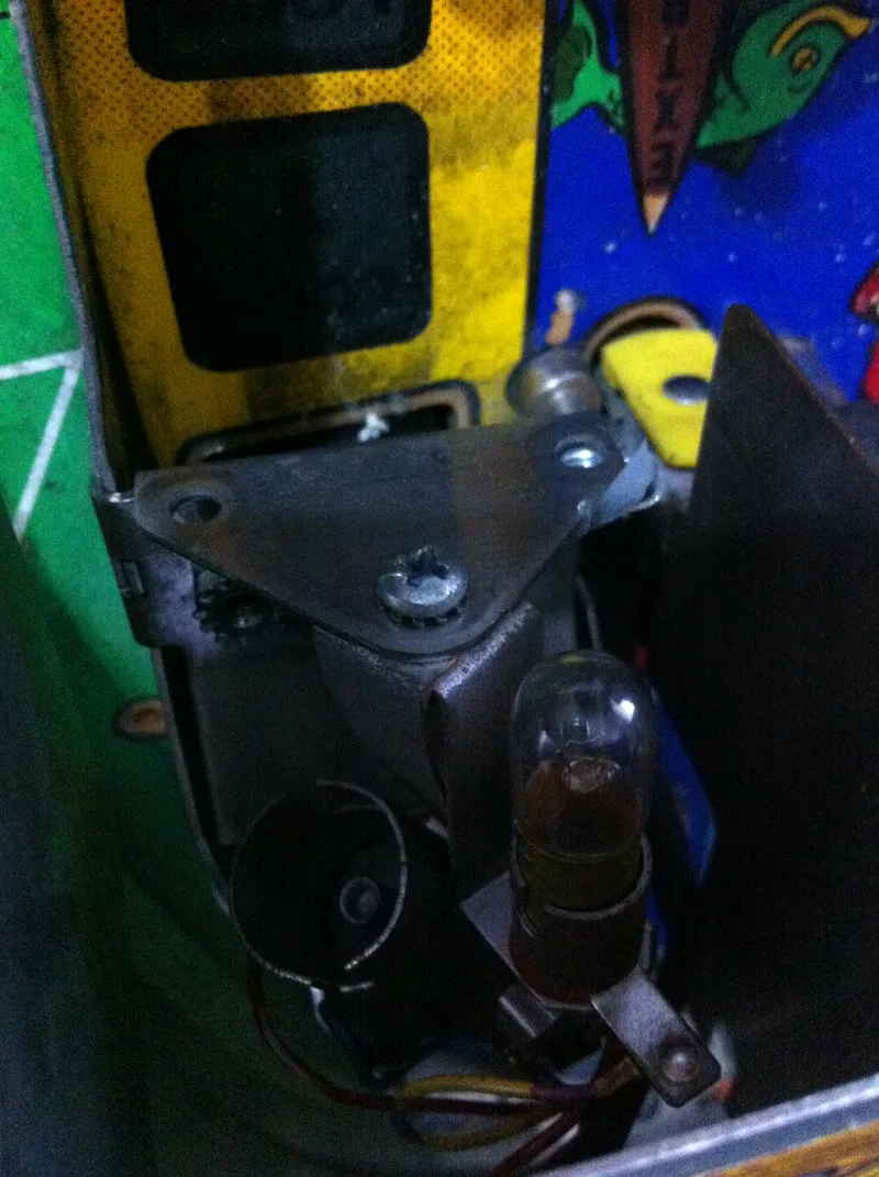 The 1-bank drop target assembly actuator which can get bent out of shape and hit the bracket above, as in this picture.