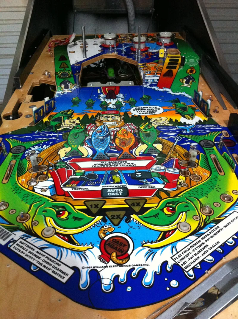 Remember at the start of this post, when I said that the Fish Tales theme did nothing for me, and I planned to sell both machines on after restoring them? Well, a funny thing happened in between restoring the first and second game. I had a chance to actually play it and found out that it was one hell of an awesome game! There are a lot of great shots in the game and the elusive super jackpot is a very difficult goal to reach. I even warmed up to the theme! I still don't care much for fishing, but the music and the backbox topper integrate very well into the gameplay. It's kitsch, but it's fun.