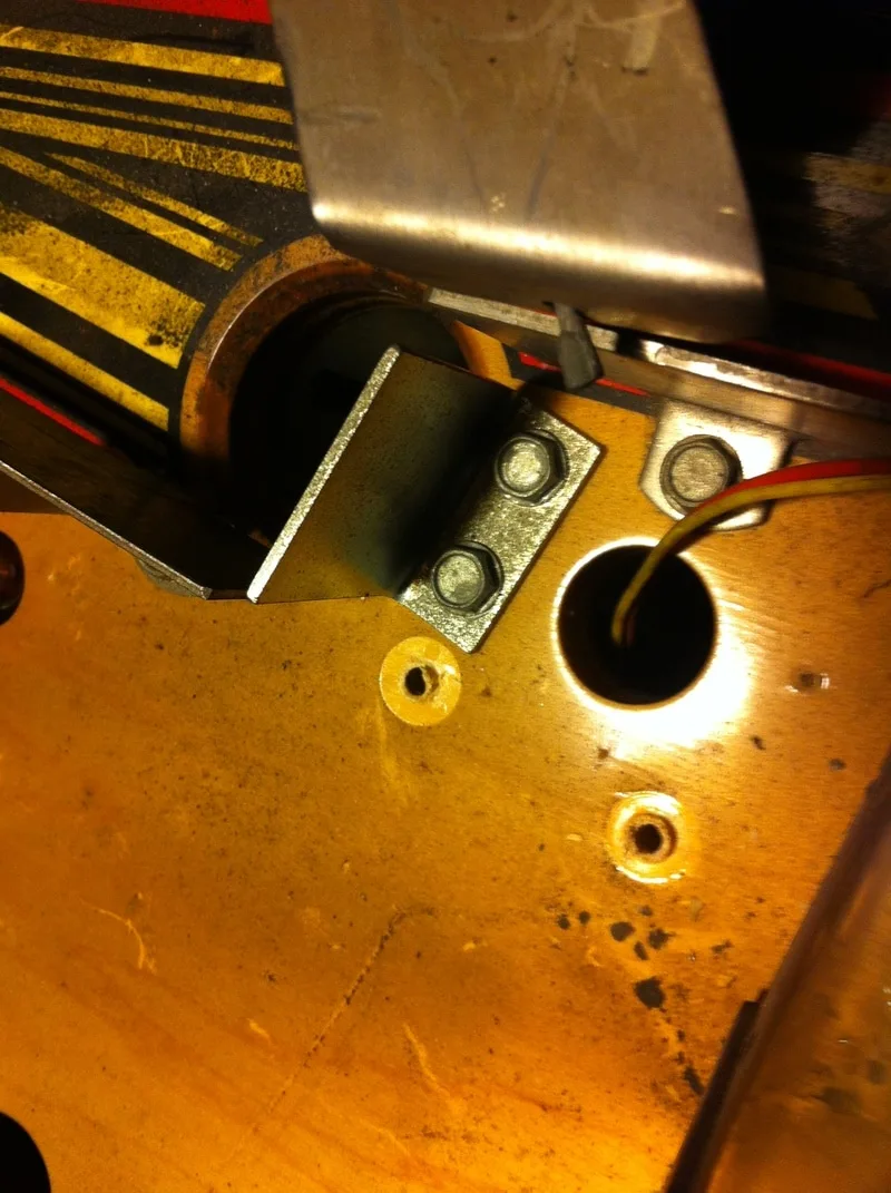 The two holes from the centre post between the flippers before the start of repairs.