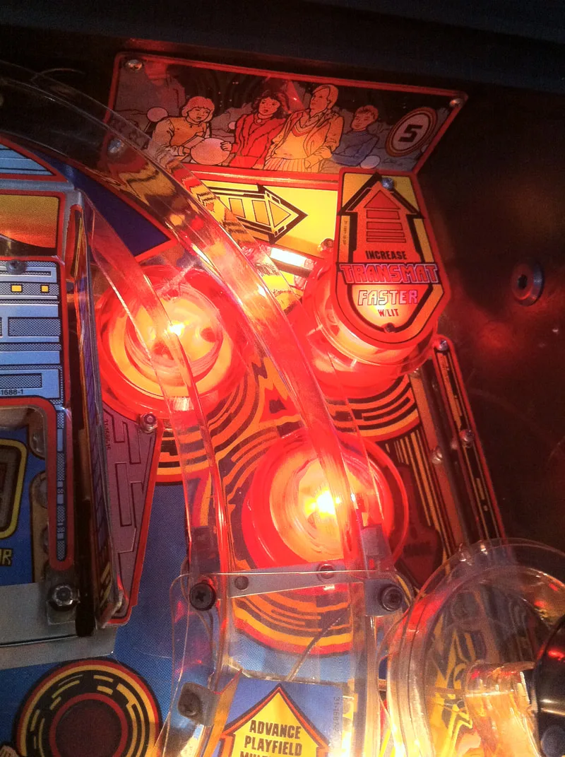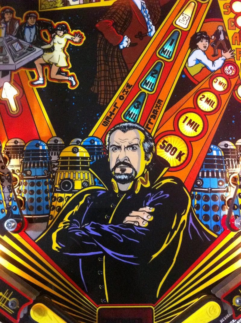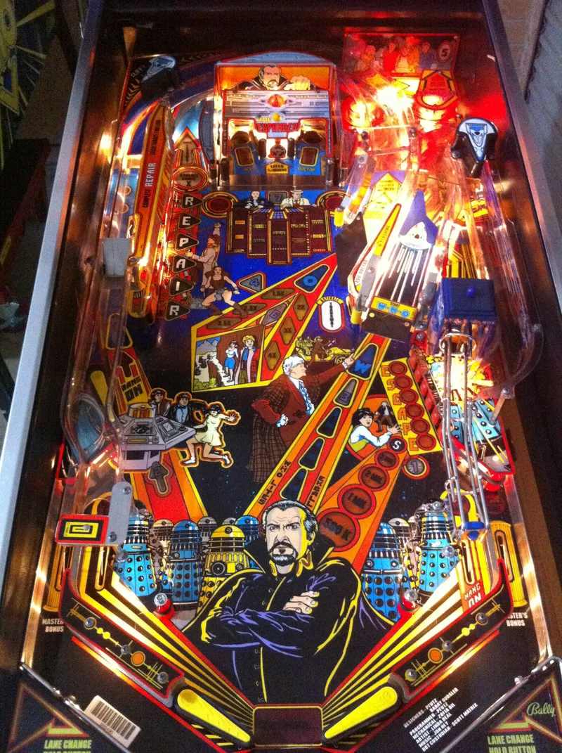 I replaced all of the broken lamps and installed fresh black rubbers throughout the machine, including three new black flipper rubbers. I left the broken slingshot plastics on the machine for replacement at a later stage. Doctor Who is also a game that looks great with LEDs, but I did not install any this time.