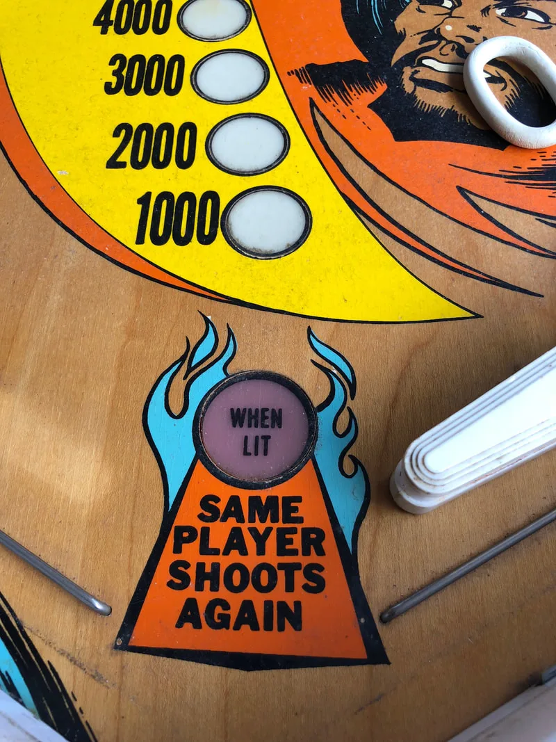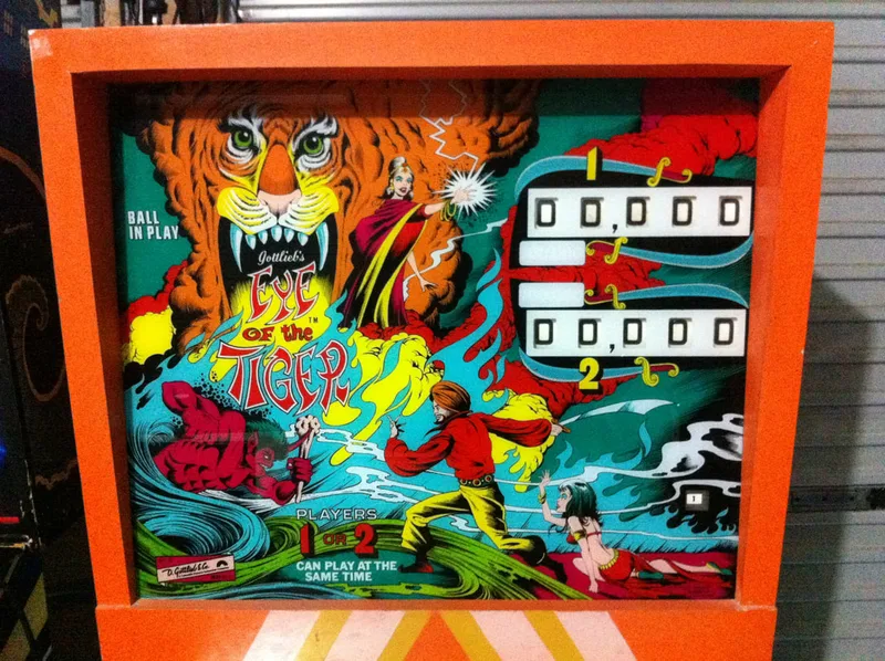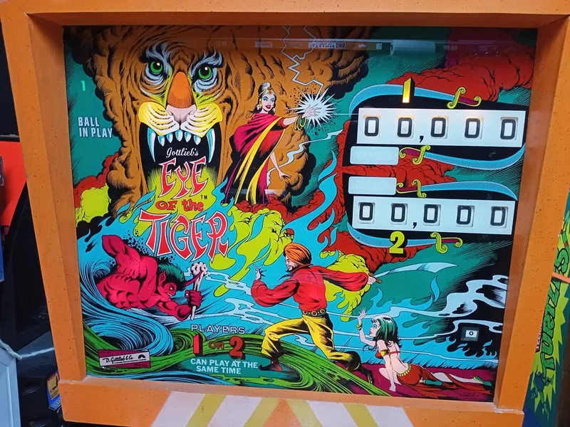 After having some time to play and get to know Eye of the Tiger, I can definitely appreciate the slower gameplay and stricter—yet simpler—rules. Knocking down each of the drop target banks with a single ball is much easier said than done. The quadruple flipper setup is also interesting and leads to a lot of frustrating drains before you get used to the fact that you can't simply lift a flipper to trap an incoming ball anymore! But, I like it. It plays quite fast for an EM game and I do love drop targets, so having ten to play with makes it a drop target shooter's dream! None of my other games have quite as many drop targets, so if I'm in a sniping mood, Eye of the Tiger is usually my first pick.