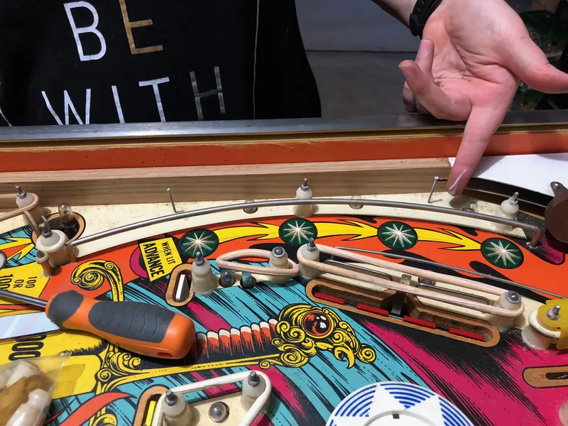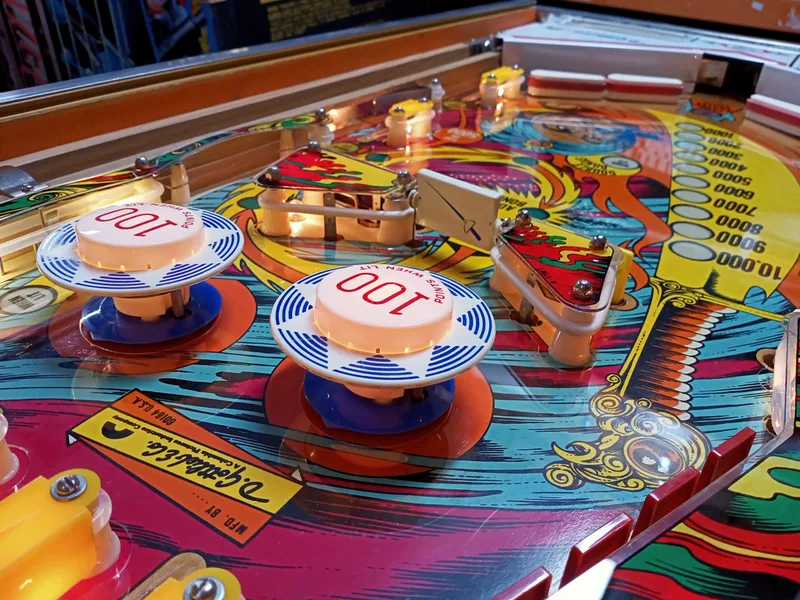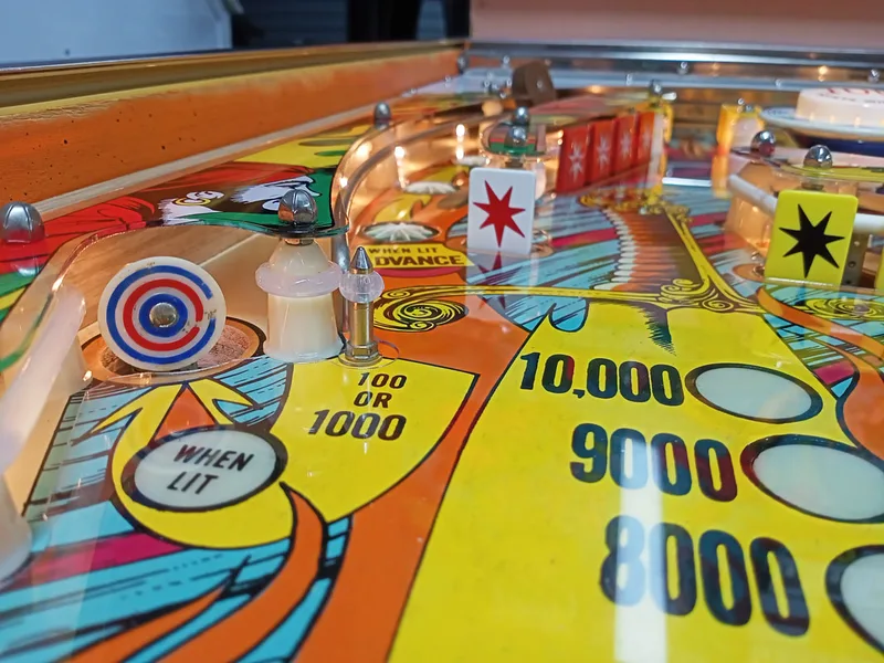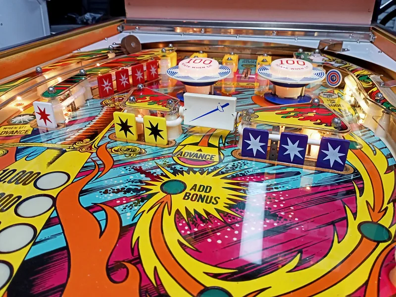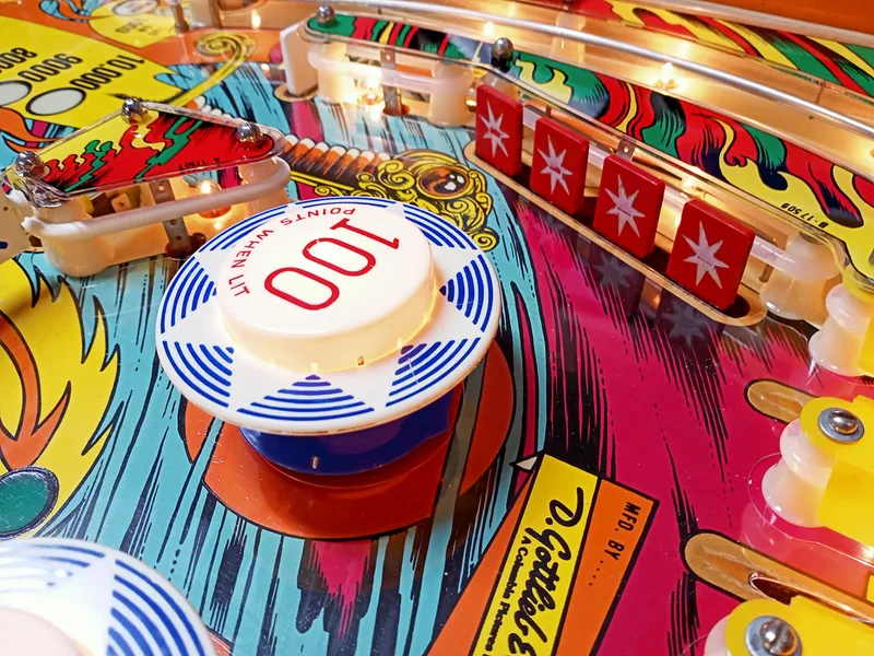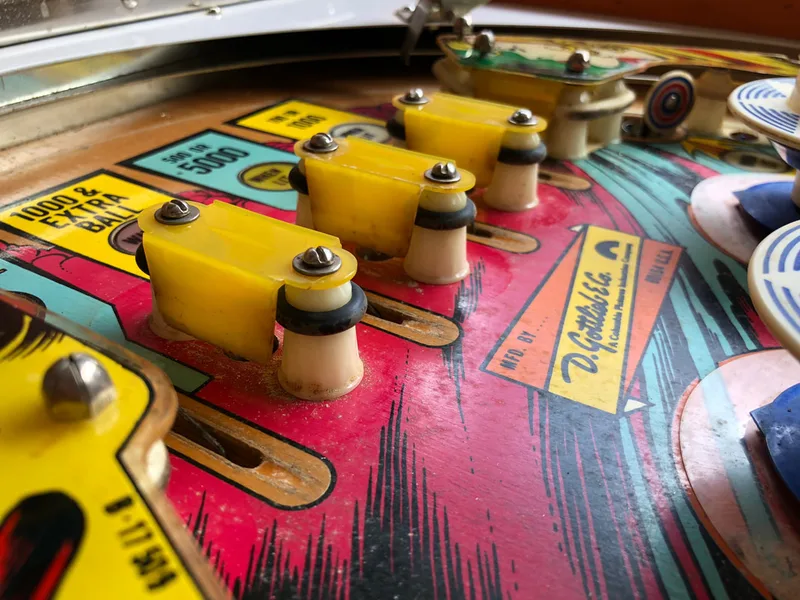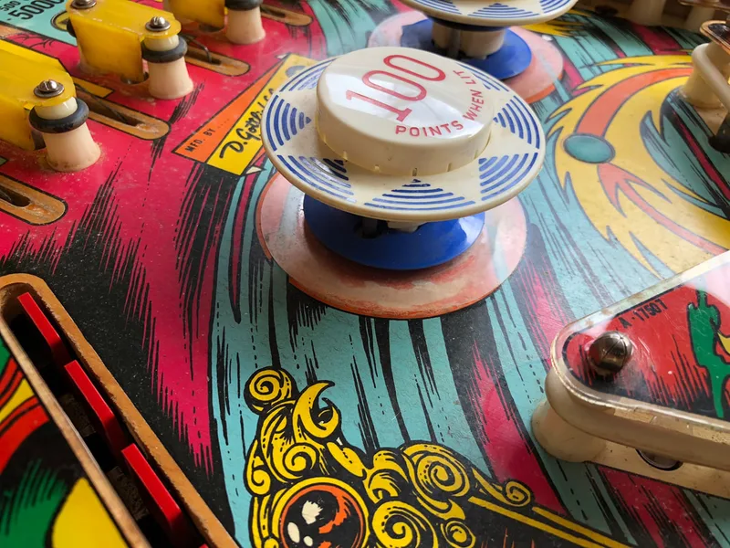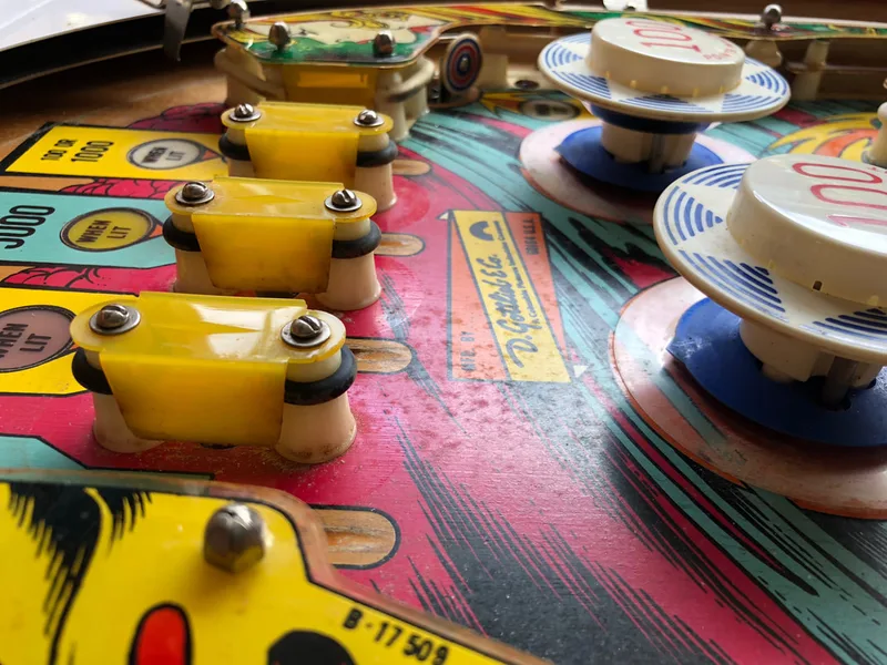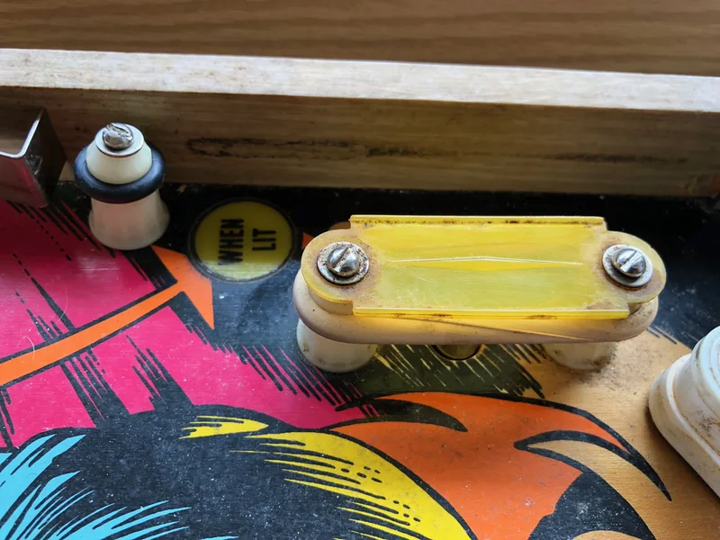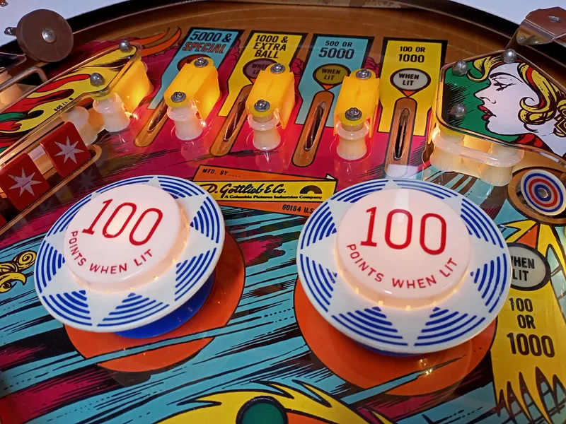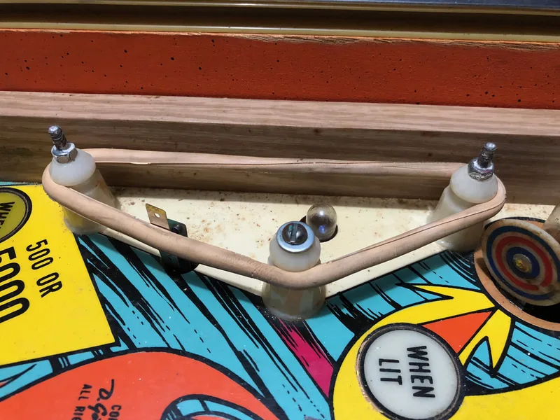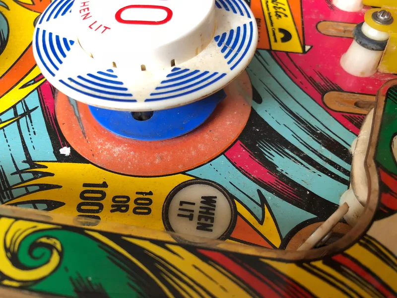 Paint wear around pop bumpers.