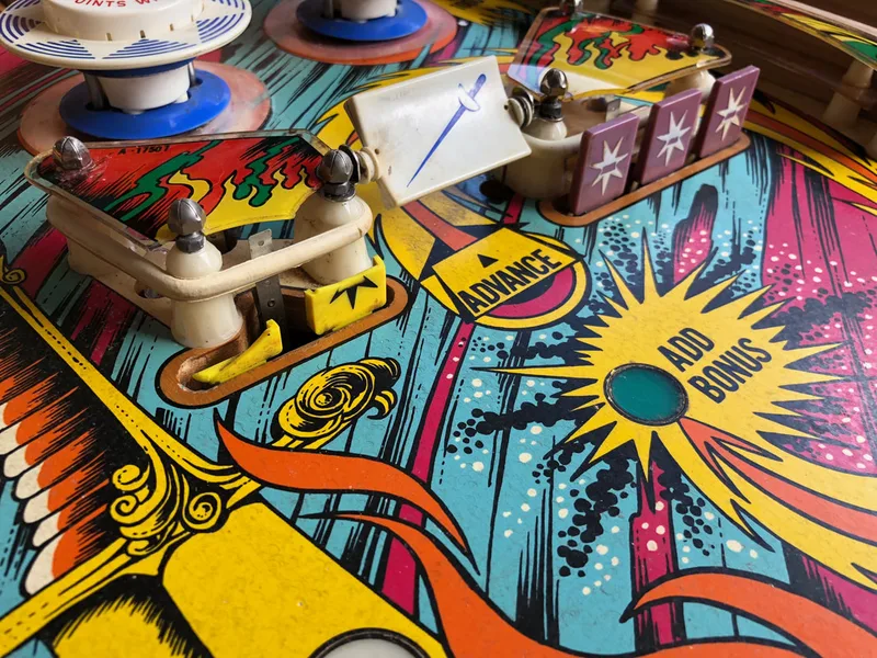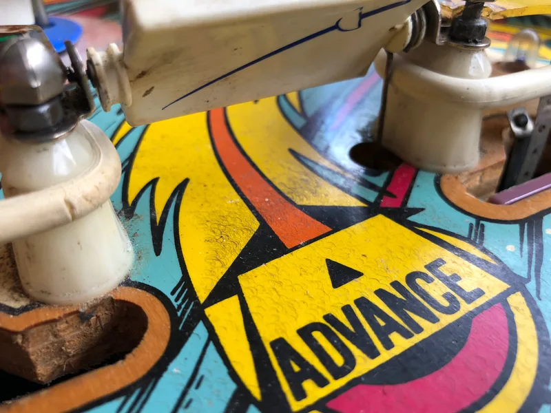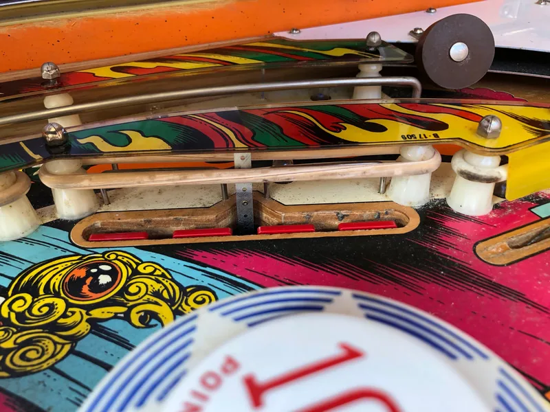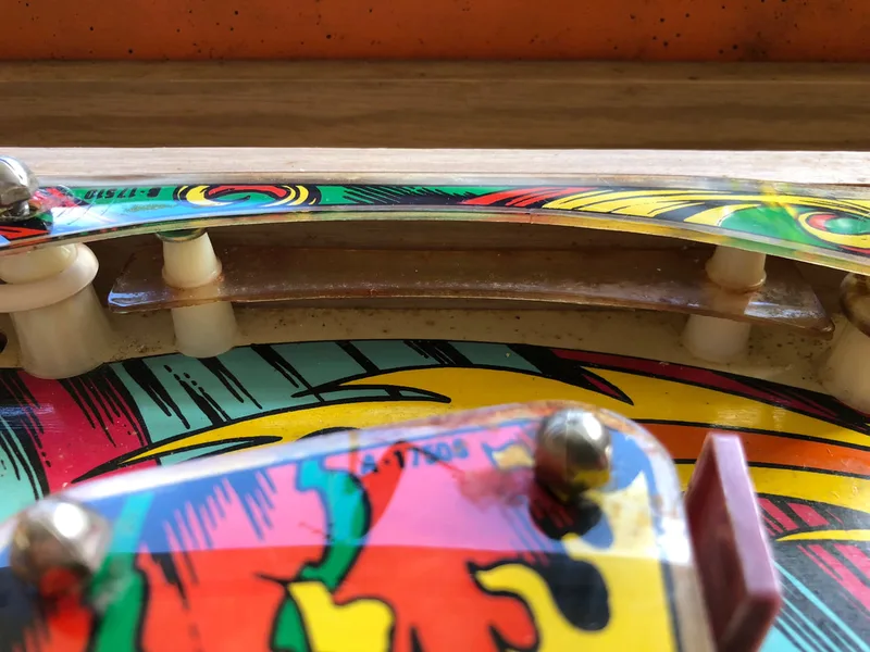 The protector levelled the playfield out nicely. No more ball hops around the sunken inserts. The ball movement is buttery smooth now, and speeds up the game a little bit. Ball action around the pop bumpers gets particularly intense with the protector installed. Even though it does change the characteristic sound of the ball rolling over a timber playfield, which is a particular vibe with EM machines, I think it works well on this machine and doesn't detract from the gameplay.