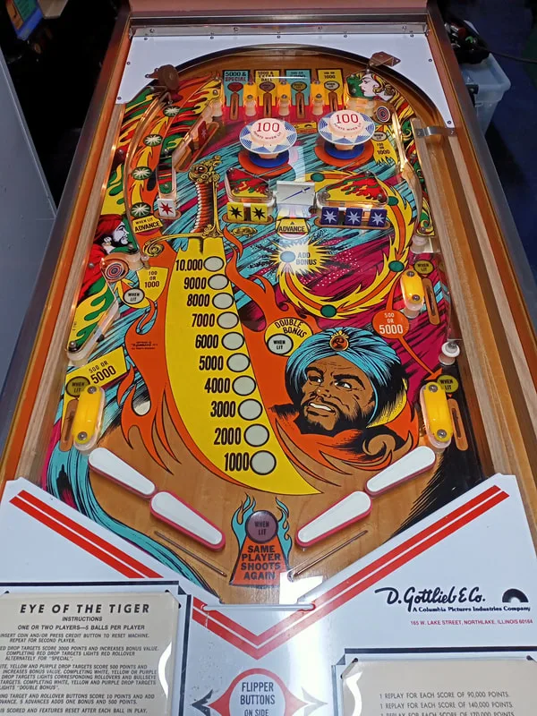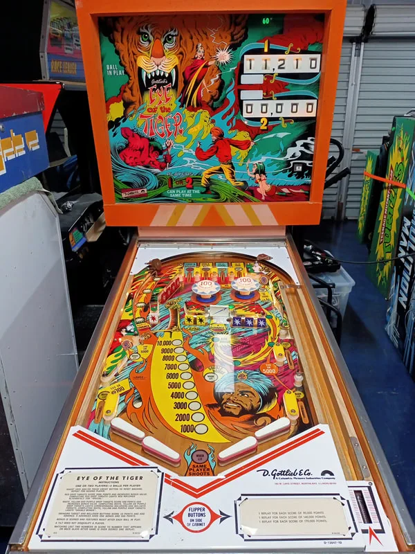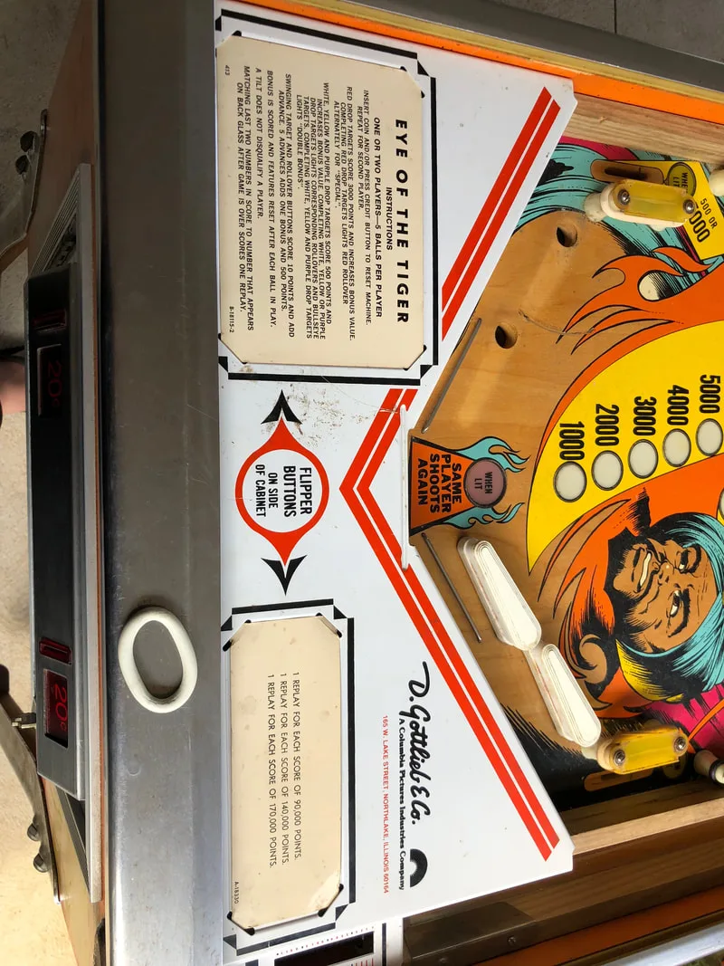 This post features my first electromechanical (EM) machine! Wow. I never thought I'd ever own an EM game, let alone restore one, but here we are. I came across this game a couple of years ago when the old owner offered it to me for sale for a very good price. I couldn't resist, and drove out to Northbridge in Sydney to collect it. The owner lived in a beautiful harbourside mansion, and the Eye of the Tiger (Gottlieb, 1978) was mainly played by him and his son. The story is that this game was originally purchased at a Luna Park auction in 1980 and had sat in this owner's home since that time.