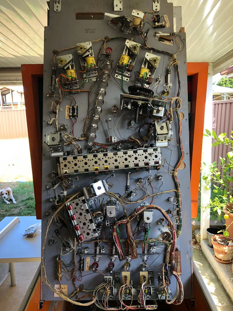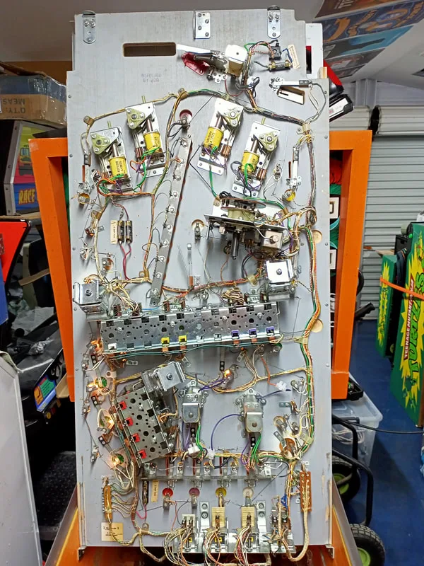 As this was my first EM, I had no idea what may have been wrong with it. I had a look at some of the simple stuff to see if I could get a game going— fuses, broken wires, missing parts—but nothing brought the game to life. The owner said that he had had issues with the game not working properly before, and his solution was to spray some of the relays with contact cleaner. Yuck! While I didn't know much about EMs, I did know that contact cleaner is a no-no. So, I already knew there was a lot of cleaning ahead.