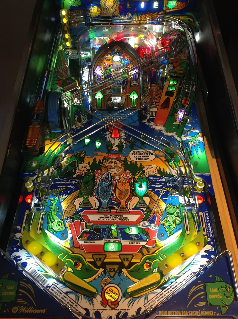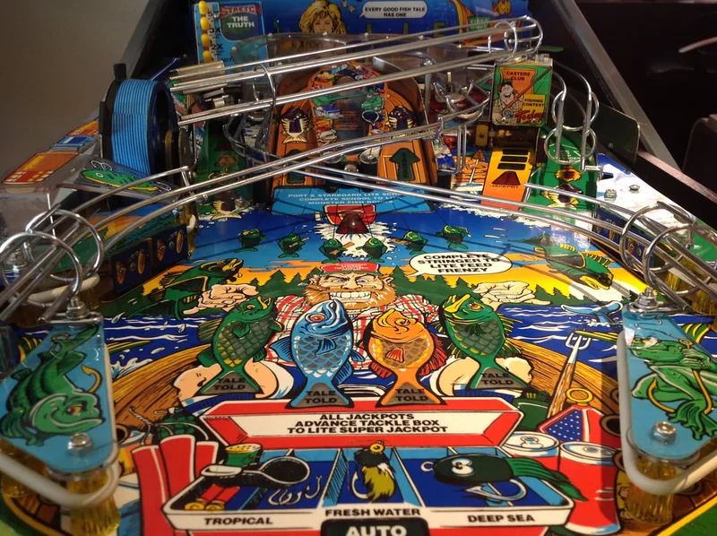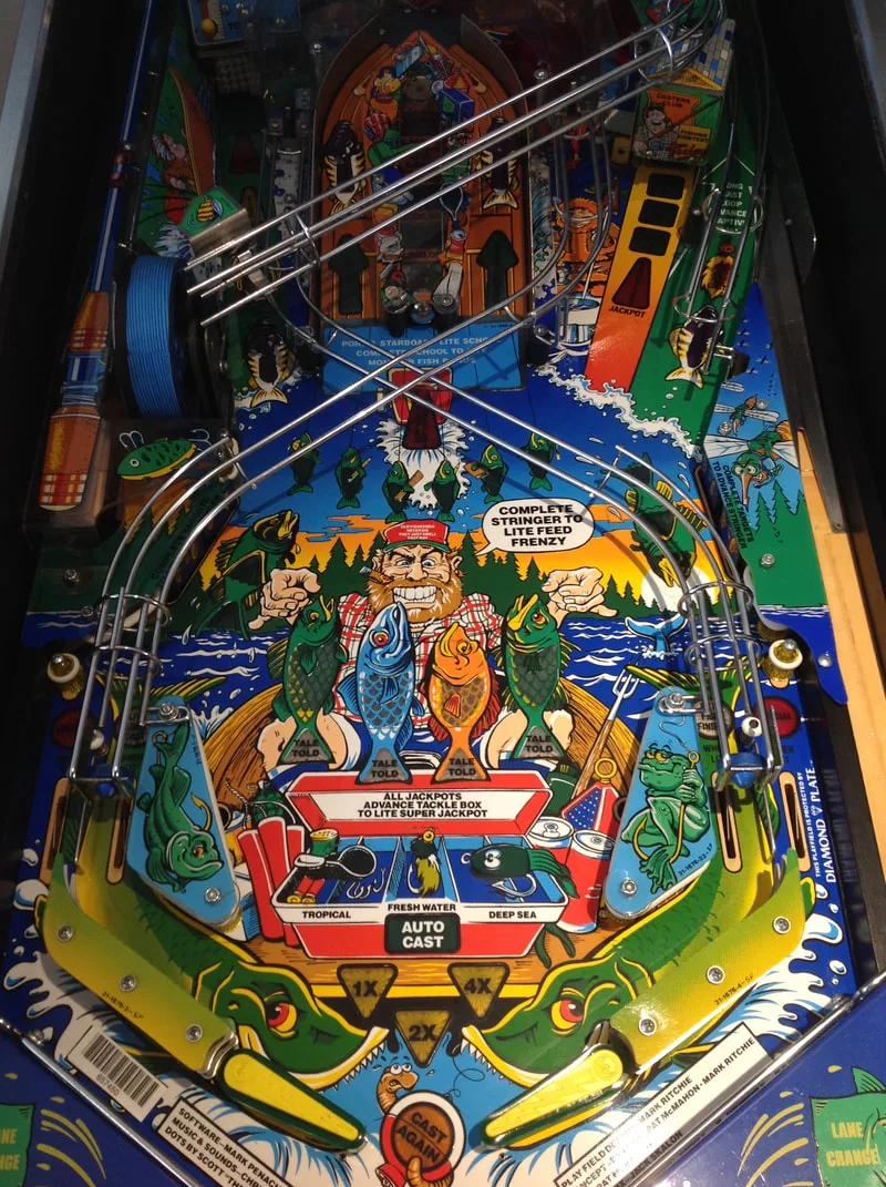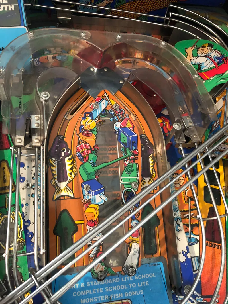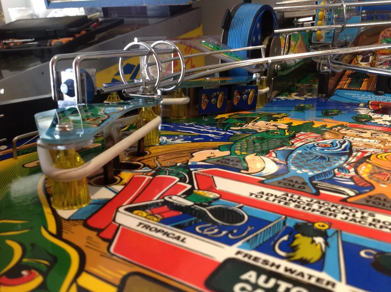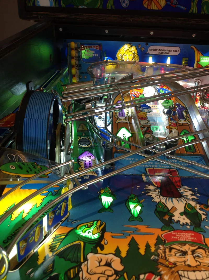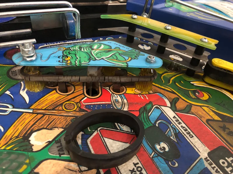 As I have worked on Fish Tales a few times already, playfield reassembly came together quickly after cleaning. All of the coil mechanisms under the playfield got a clean and service, too, and play was nice and snappy after that.