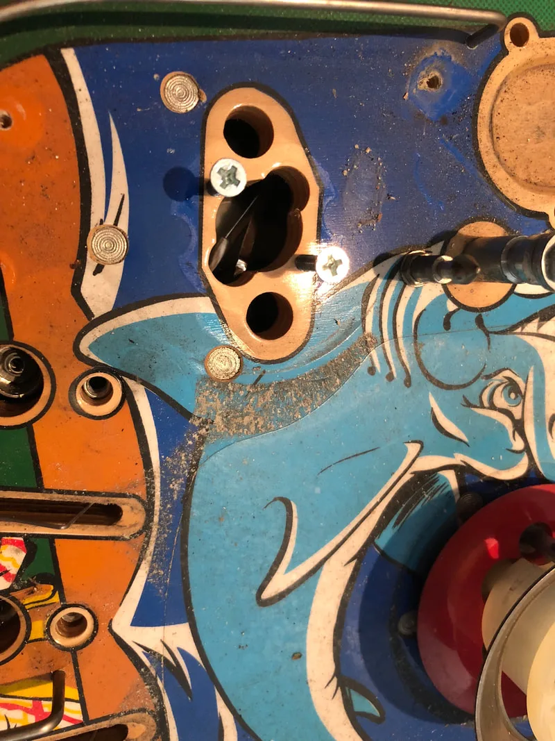 While the bumper was in pieces, there was a good opportunity to clean away the grime that had collected on the playfield as a result of the broken wafer. After a quick clean with Novus 2, the area was shiny again.
