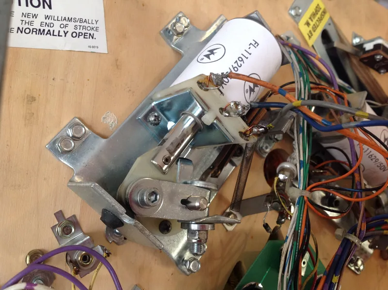 However, the lack of a cap was not the reason that the drop target could not lower. The actuator arm (part no. 01-8647-R) had broken, such that the "arm" was no longer present. This part simply needed to be replaced (PSPA). Once it was replaced, all was well again.