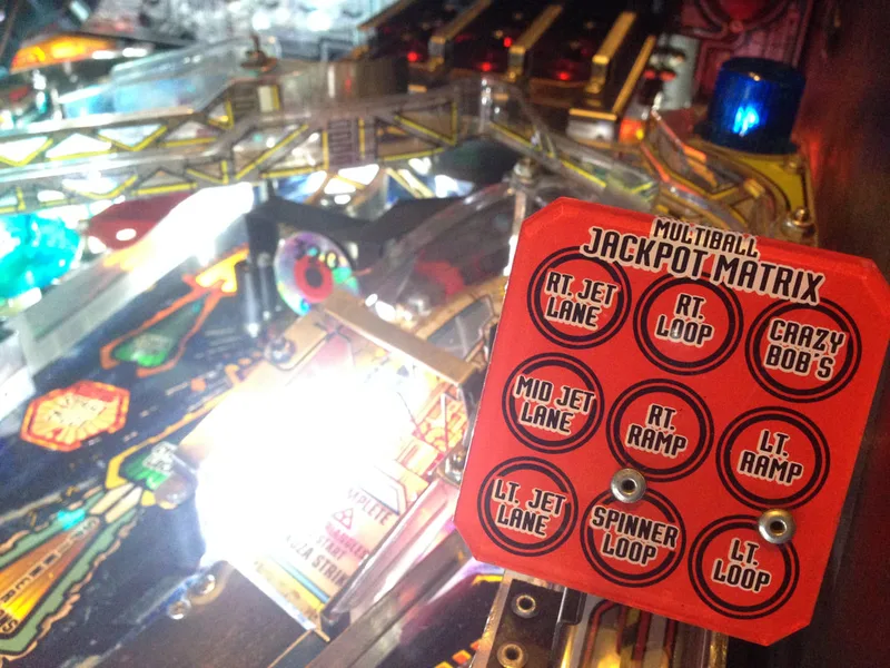 However, there were two playfield plastics which were missing from the game. These were the ones directly above the right pop bumper. They had been replaced with a single piece of red plastic material. For the most part, these pieces are hidden from the player's view by the ramp assembly and the Crazy Bob's plastic. The customer in this case didn't want to bother with replacing these pieces. However, should you find these plastic pieces missing on your own game, replacements are available (Ministry of Pinball).