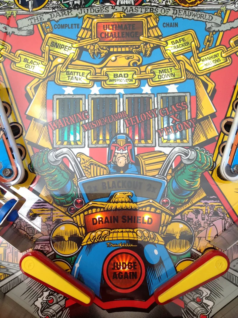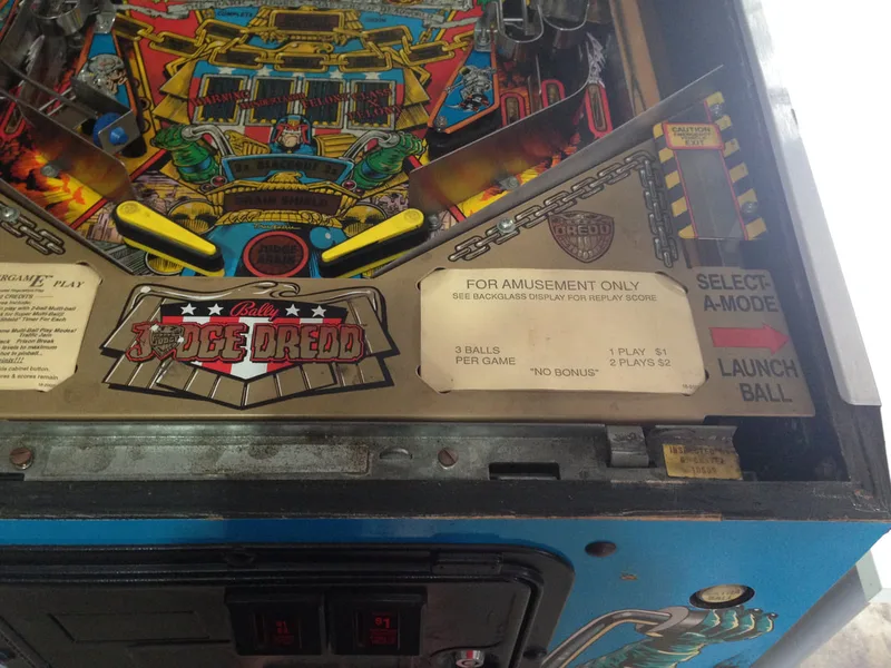 In terms of the restoration, Judge Dredd was demanding. The Deadworld was a complex assembly to disassemble and clean, and it was very fiddly getting everything back together and working again. There were some interesting circuit board problems with the display and game resets, as well. Those were a good learning experience. I will keep Judge Dredd for a long time, I think. There's a lot of game for your buck in this cabinet (two games if you could Supergame!).