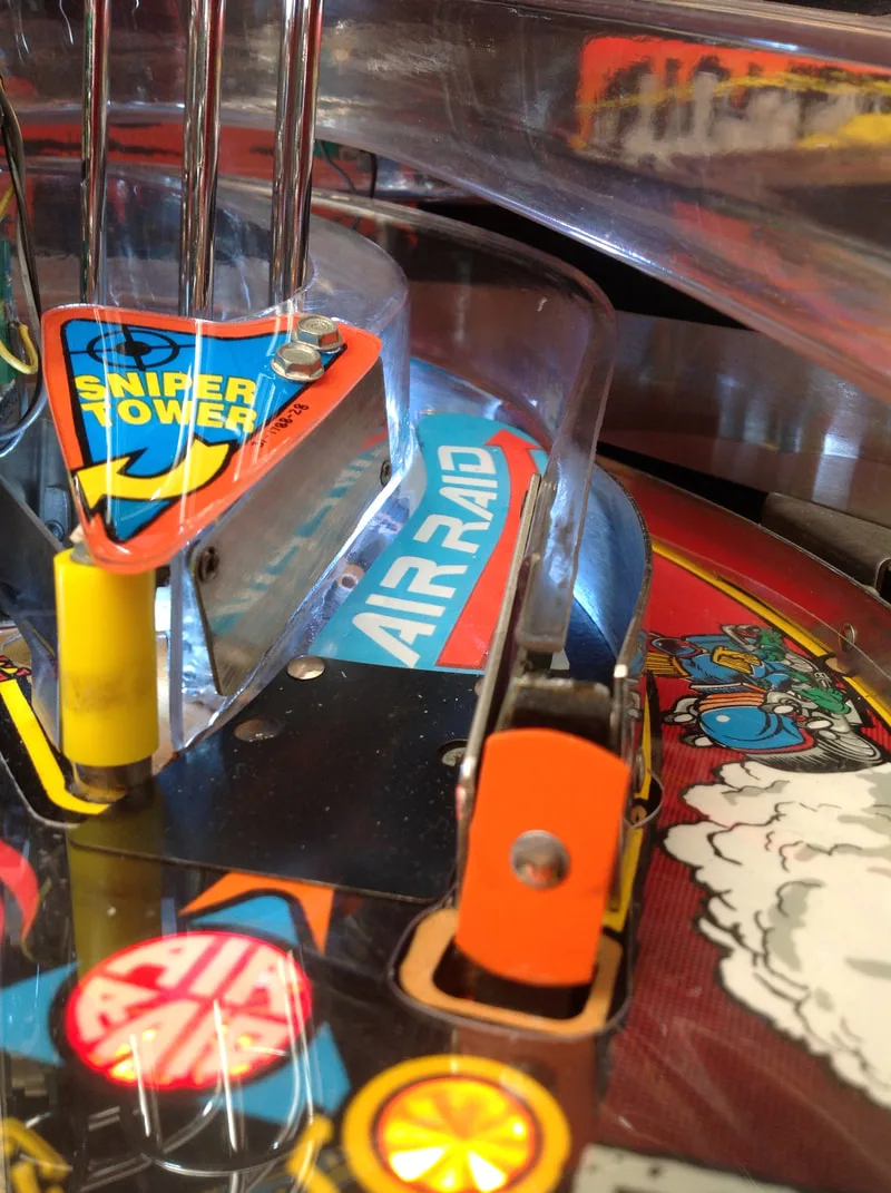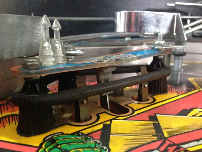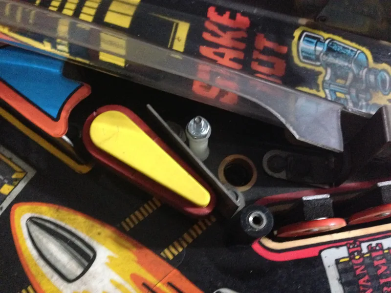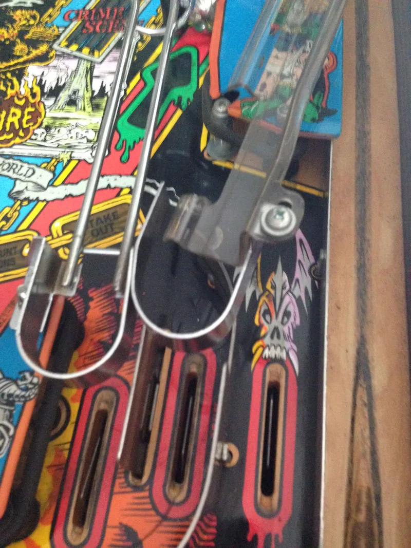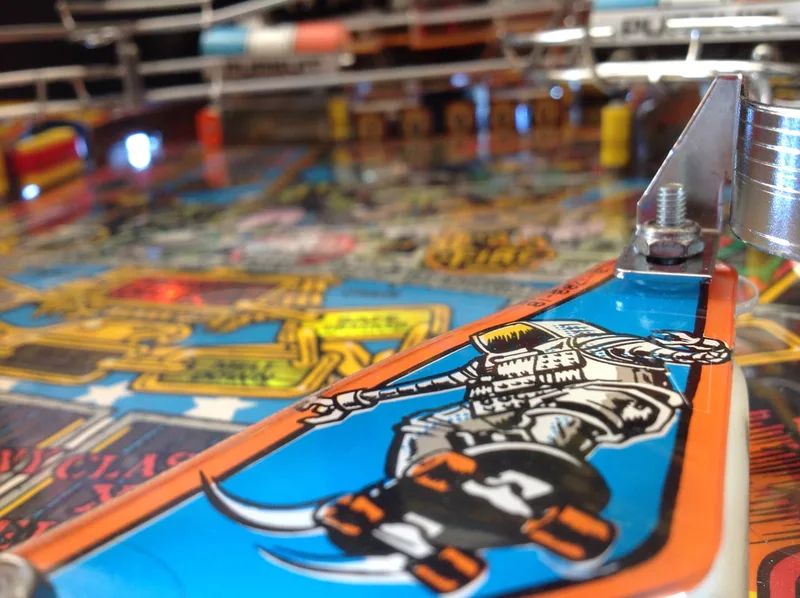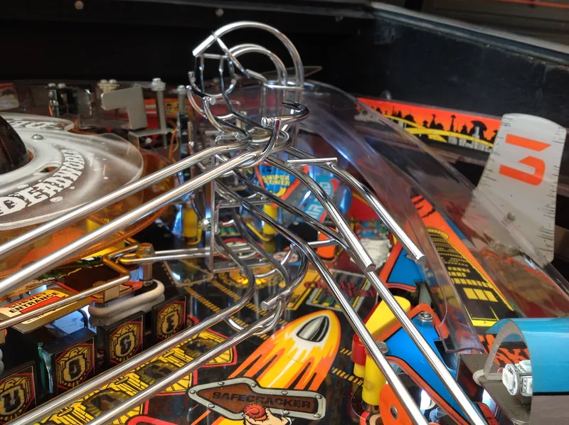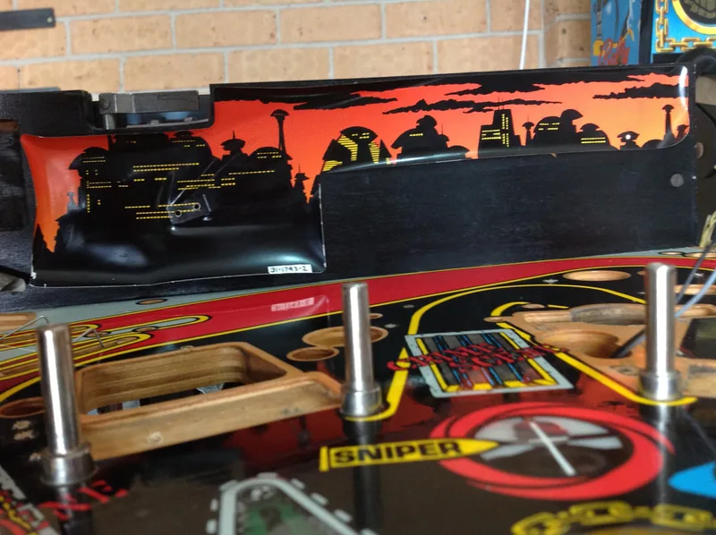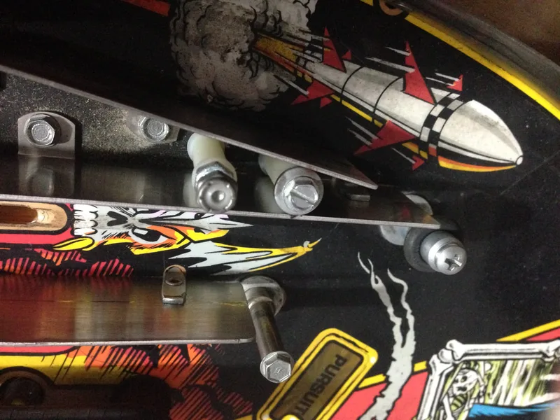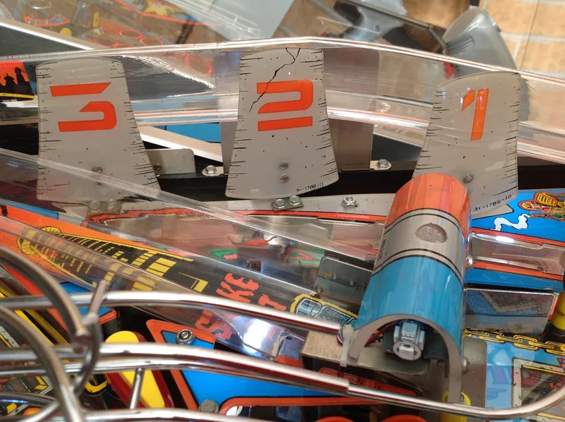 I was lucky in that the assemblies were either intact or properly repaired on my machine. Most people aren't so lucky, and are missing parts. Unfortunately, parts for this assembly are not easy to get locally. The metal support brackets are not currently available anywhere. The plastic covers only seem to be available at Pinball Life. However, the decals are available from a few retailers (Pinball Life, Ministry of Pinball, Marco, Pinball Center).