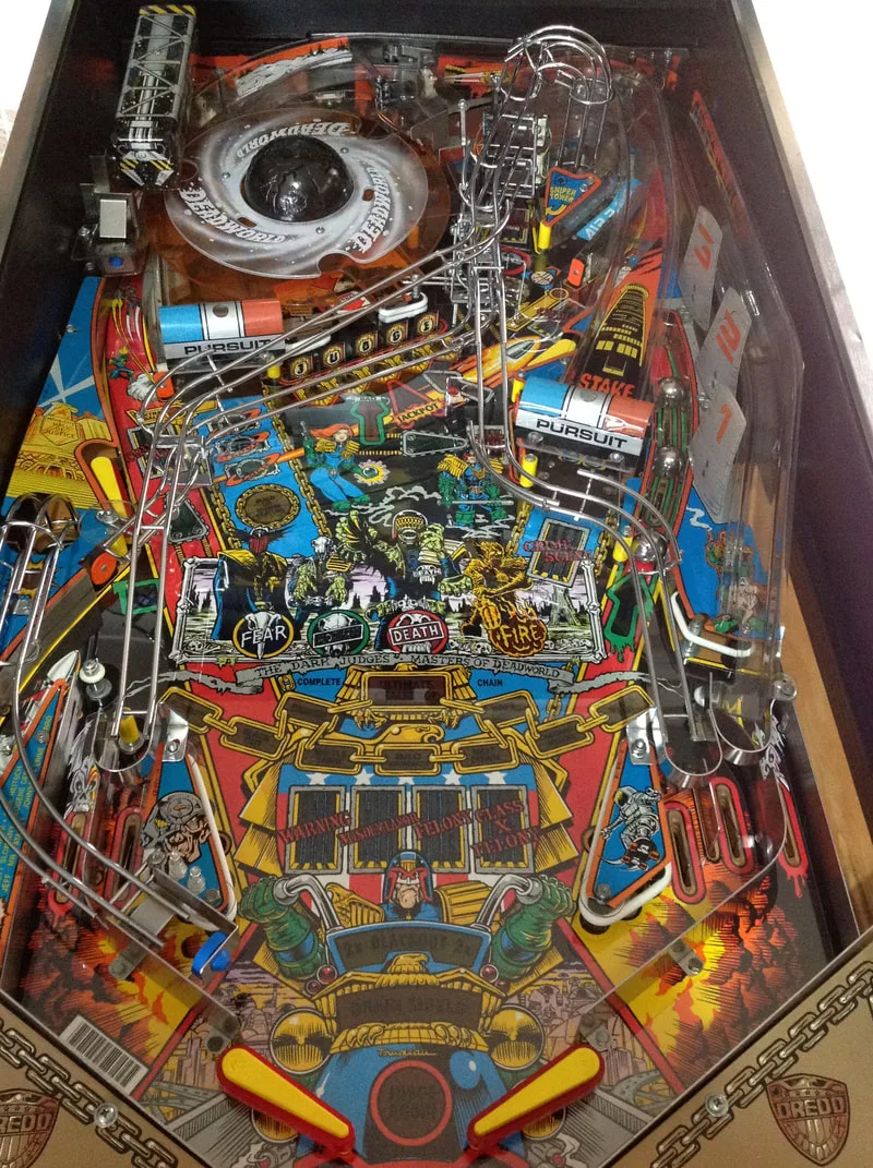 The main thing to remember when assembling Judge Dredd is to test the operation of the Deadworld before installing all of the ramps, plastics and wireforms that obstruct it. It is very hard to take it apart piecemeal so don't assume you'll be able to get to everything easily once it is installed on the playfield.