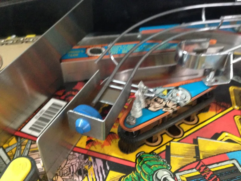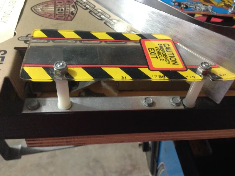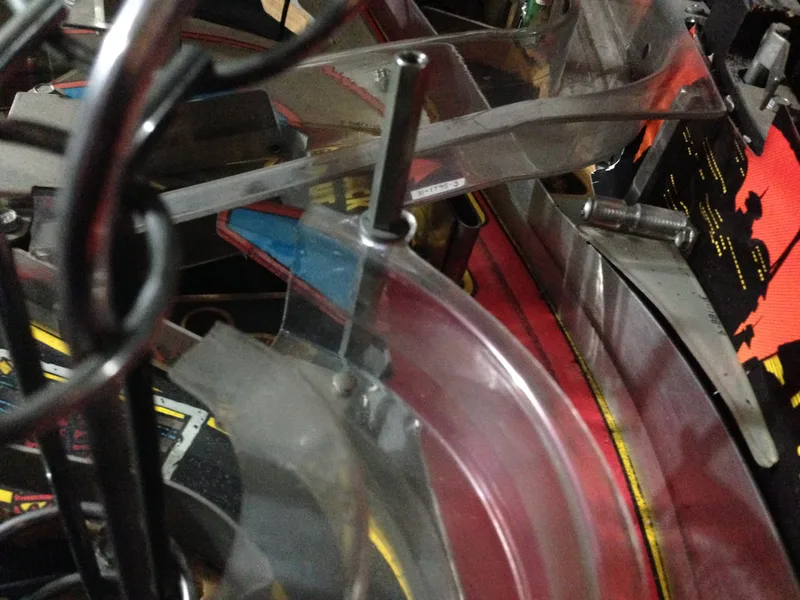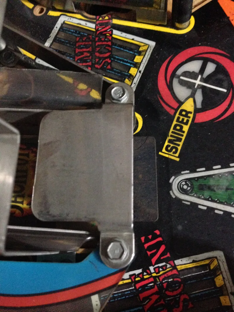 This is a common issue and the reason why a lot of Judge Dredds have cracks in this section of the ramp. Luckily, there is a Cliffy protector designed to address this problem. My ramp was in perfect condition, so I installed the Cliffy to ensure it stays that way. However, it's still a good idea to install a protector even if your ramp is broken, as it will keep the pieces secure. There are some good images of such a reinforcement on Cliffy's website, linked above. It was a bit odd having to drill holes in an otherwise perfect ramp... putting holes in intact pinball assemblies is generally not what you want to do! However, the way this ramp mounts means that there's no other effective way to secure the bracket. Place the protector on the ramp and mark the position of the holes before you drill to make sure you install them in the right spots. You can use rivets instead of the supplied screws and nuts if you want a more professional finish. I used the supplied screws and nuts, which I think look just fine.