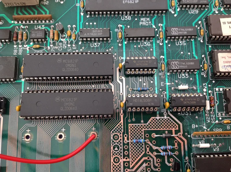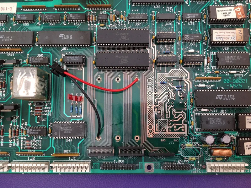 Christmas sure was a good time for pinball repairs! Several weeks ago, a customer advised me that their Elvira and the Party Monsters (Williams, 1989) was no longer working. They had had the game for a long time and it had always played without issue. However, they did note that sometimes it would take several flicks of the power switch for the game to turn on properly. Now, it would not turn on at all. No lights, no sounds; nothing! When they opened the backbox to inspect the game, they found a lot of green electrolyte from badly leaking batteries on the MPU board. Uh oh! This was likely the source of their problems, so they brought the MPU board in to me for repair.
