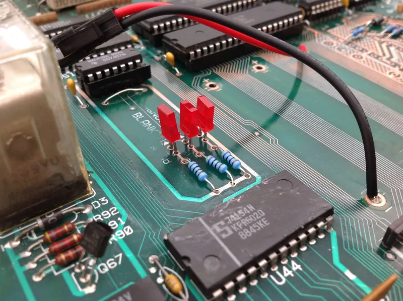 And, hey presto, the board booted up! The 5v and the blanking LEDs light up and stay on, while the diagnostics LED flashes on and off continuously to indicate a successful boot. Woohoo! It's always good to know that all the time you spent working on a board like this has finally been worth it. The customer was very happy to have his board working again, and reported that his Elvira and the Party Monsters worked once he plugged the board back in!