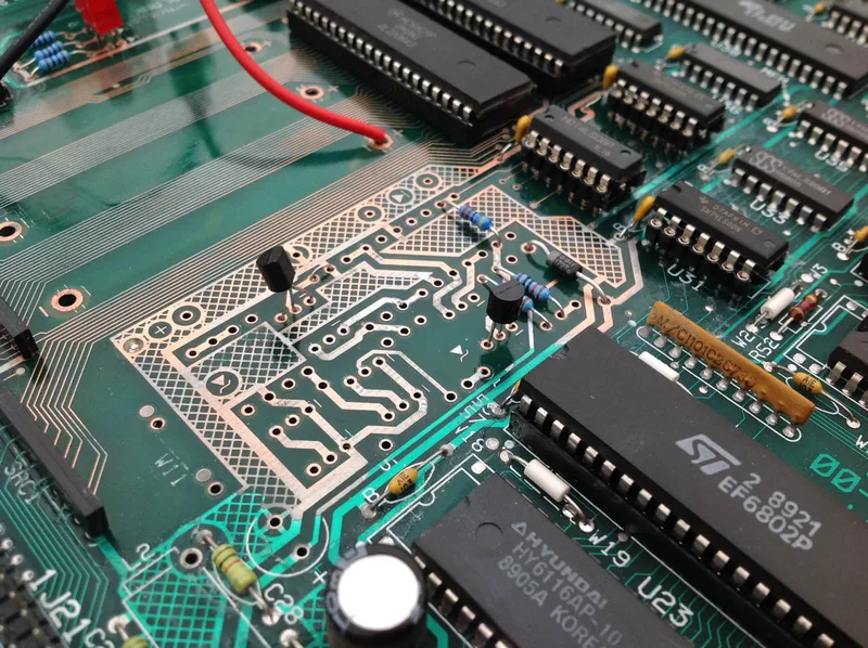 The lacquer was touch-dry in 15 minutes or so, but I left it to cure fully overnight. Once it was dry, it was time for the new parts to be installed. Areas where the lacquer covered through holes could be easily pushed through with component leads so that they could be soldered on the solder side of the board. Plus, the lacquer can be soldered through, so you don't need to worry about soldering a lacquered board.