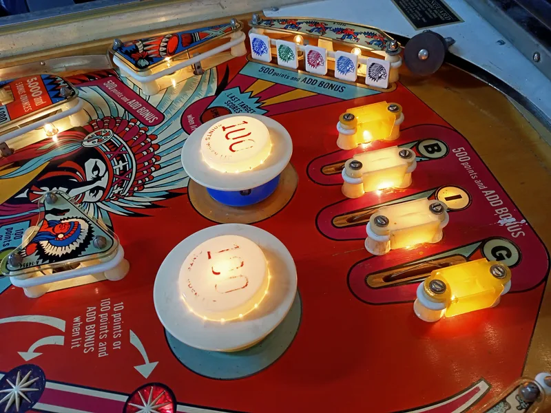 Drop targets were not falling when hit, nor were they resetting properly. The entire mechanism was gummed up with decades of grease and dirt. Cleaned out and new drop targets installed.